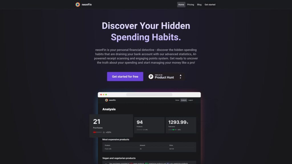 neonFin is a financial management app that assists users in monitoring their spending with sophisticated functionalities.