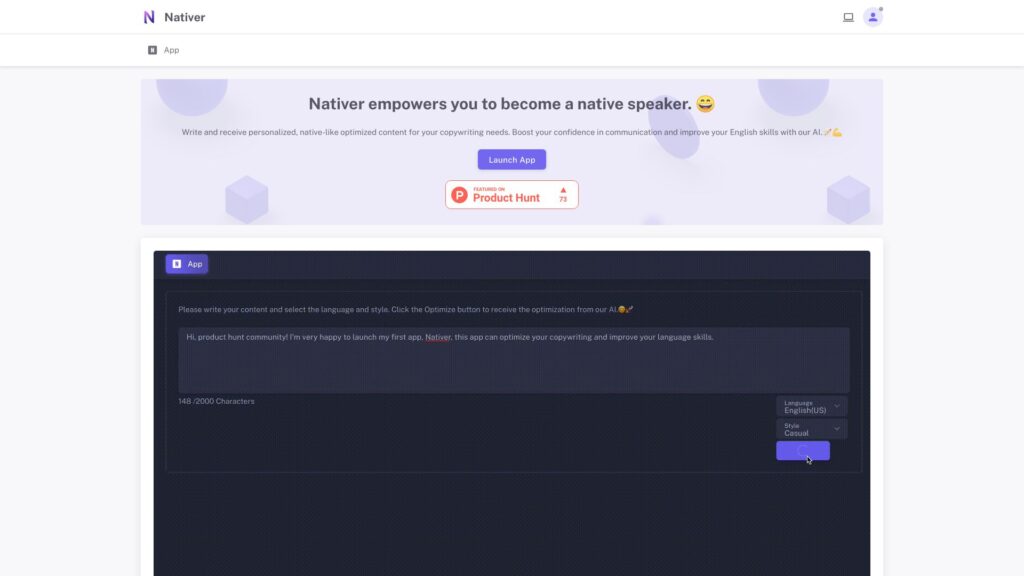 Nativer, an AI-powered tool, enhances the readability of English writing and corrects errors.