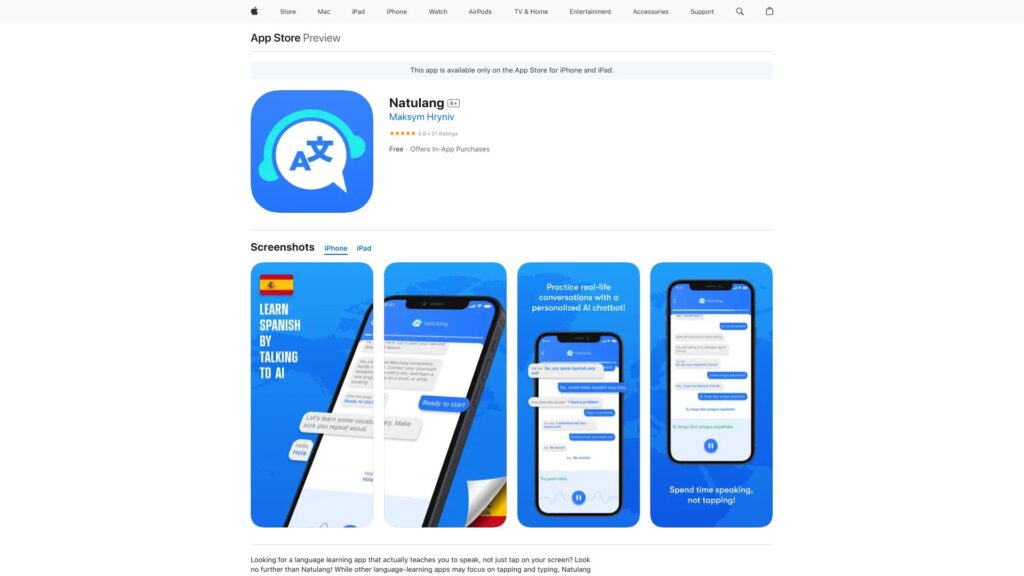Naturally learn Spanish via engaging dialogues with an AI chatbot.
