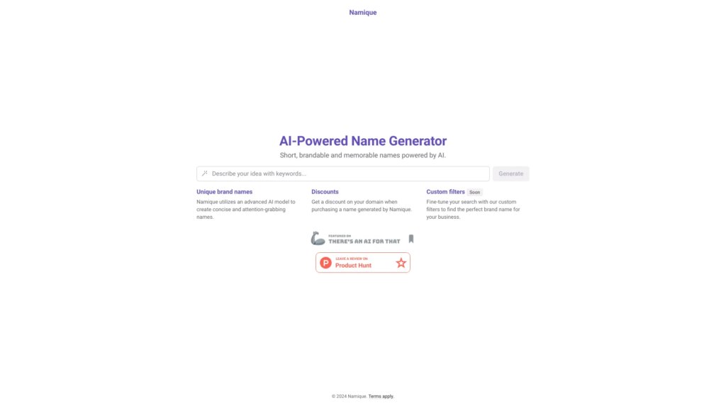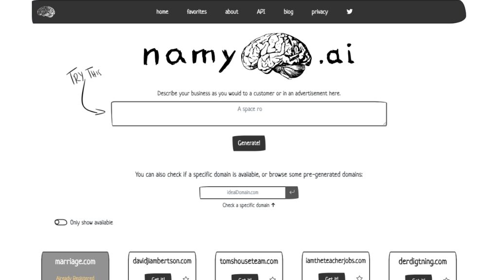 Utilize Namy.ai’s advanced AI technology to generate domain names that are both unique and compelling.