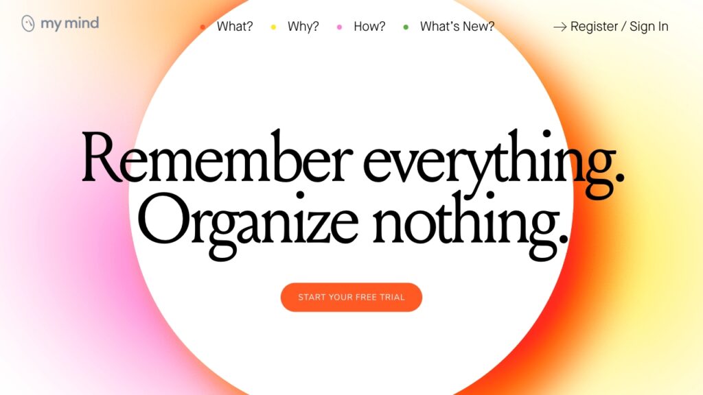Securely save and organize your important notes, images, quotes, and highlights using the AI-powered platform from mymind.