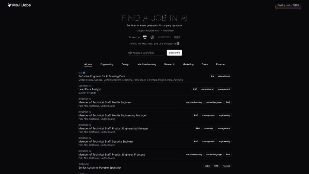 A job board dedicated to AI companies