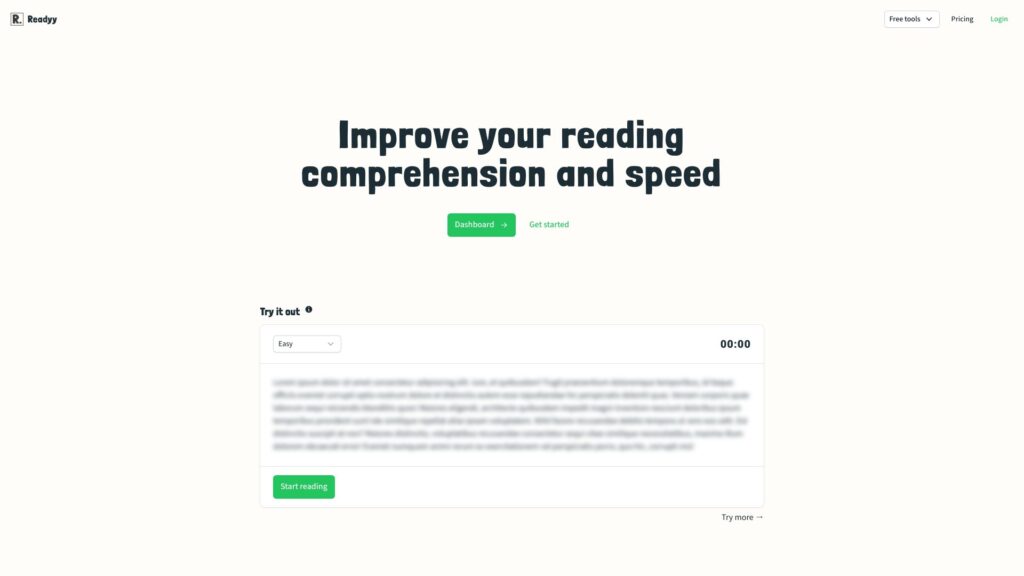 Readyy is an AI application designed for reading skills enhancement, incorporating speed training and skill benchmarking.