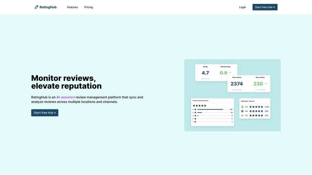 A platform for managing reviews with AI assistance by syncing and analyzing them across various channels.
