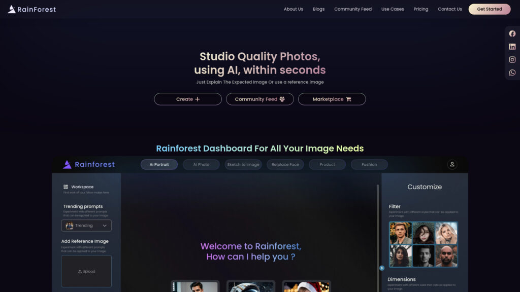 Tool for AI image generation for portraits and product photos