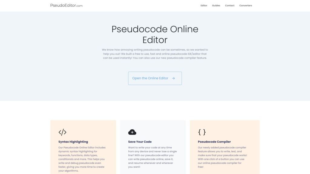 PseudoEditor is an online, user-friendly editor offering features for both writing and editing pseudocode without cost.