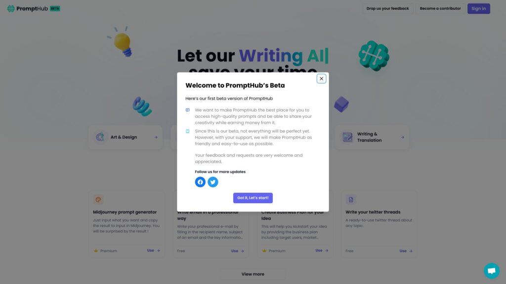 Promptify is an innovative platform providing various prompts for inspirational writing.