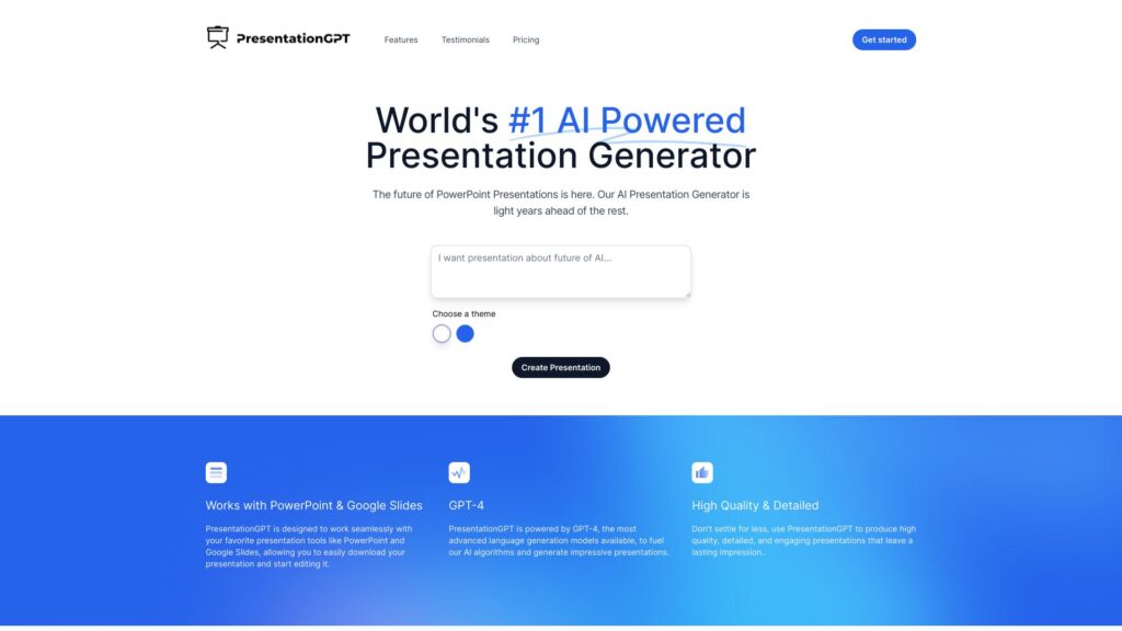 The AI-driven PresentationGPT stands out as the premier option for swiftly crafting impressive PowerPoint presentations.