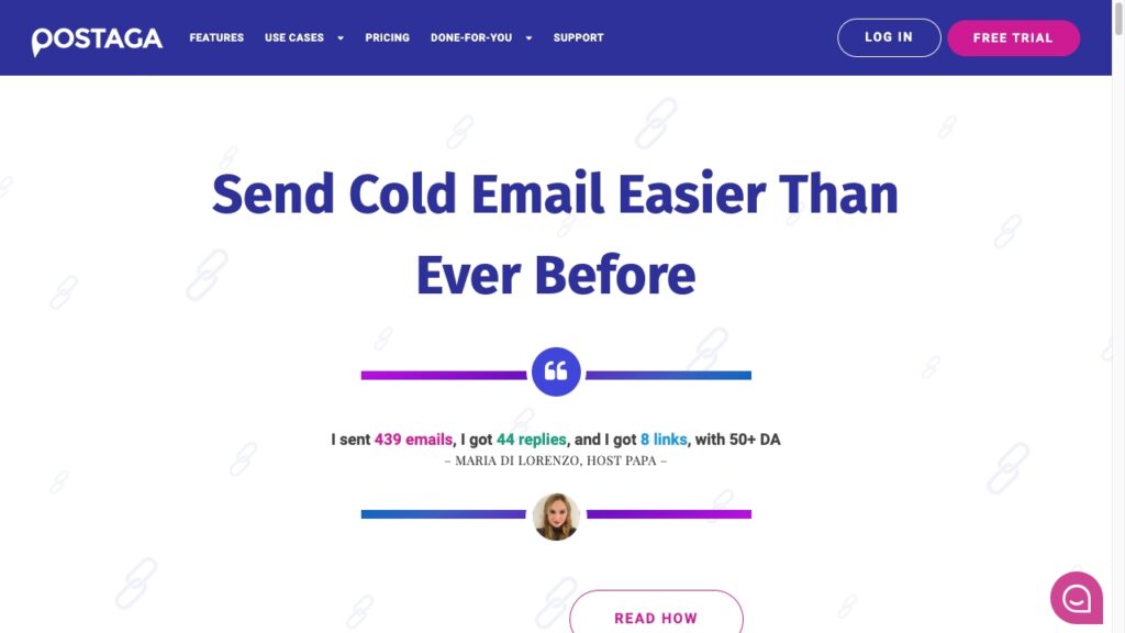 Postaga assists its users in generating leads, cultivating relationships, and obtaining backlinks via cold email outreach.