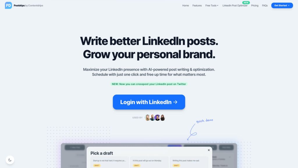 Enhance your personal brand on LinkedIn using the AI-driven tool, PostDrips.