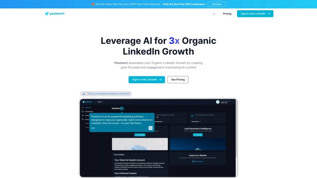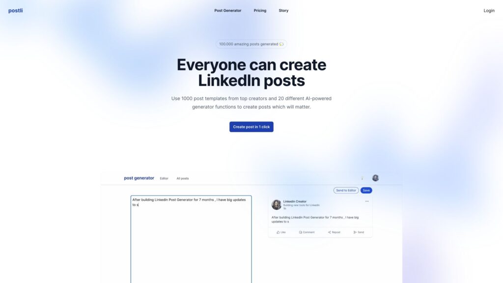 A tool powered by AI designed to create LinkedIn posts with more than 100 templates available.