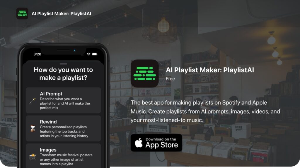 Using AI and user data, PlaylistAI is an app that generates personalized playlists.