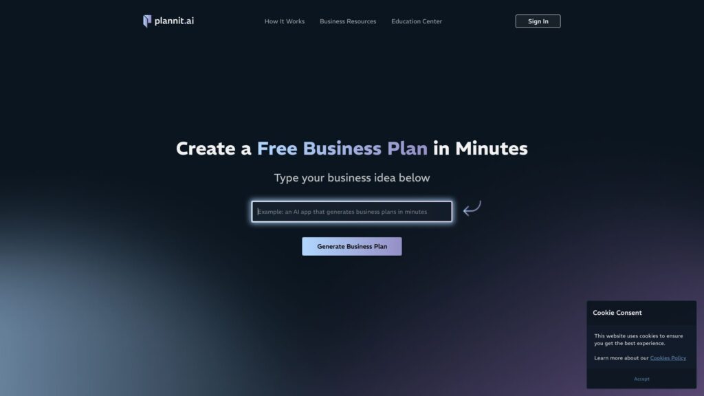An AI-powered platform quickly generates professional business plans.