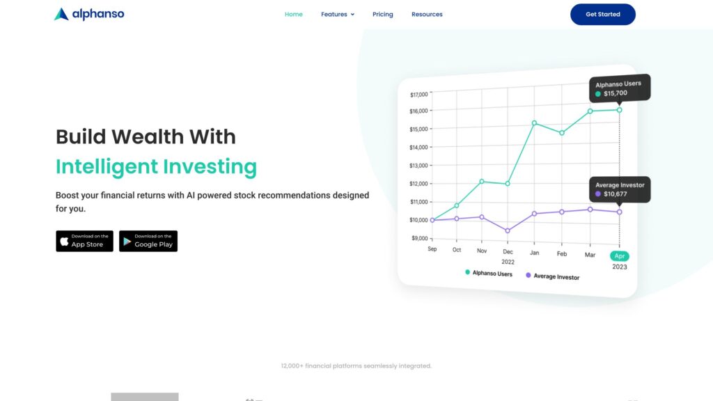 Alphanso is an AI-powered app that revolutionizes stock portfolio management. It provides personalized investment recommendations, dynamic rebalancing, stock news, and intelligent tracking to increase financial returns. The app seamlessly integrates with 12,000+ financial platforms and ensures data protection through SEC registration and 256-bit encryption.