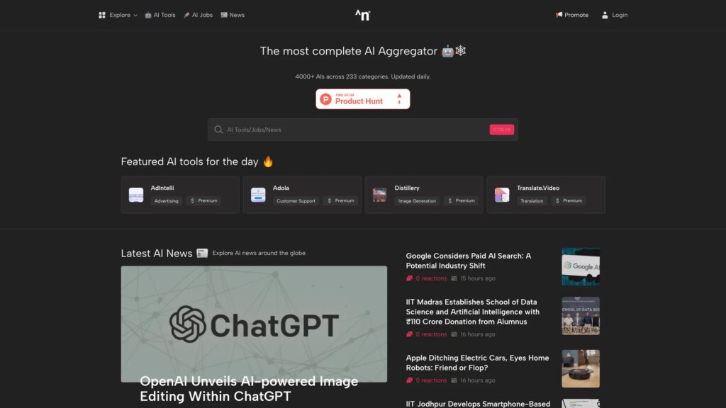The most complete AI aggregator, Ankore is not just another AI directory, we cover everything from AI tools, jobs, Glossaries, news and more!