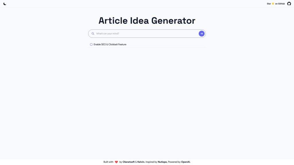 Article Idea Generator is a web tool that helps writers overcome writer’s block by generating random article ideas. It utilizes a built-in SEO and clickbait feature to ensure the generated ideas are attention-grabbing and optimized for search engines.