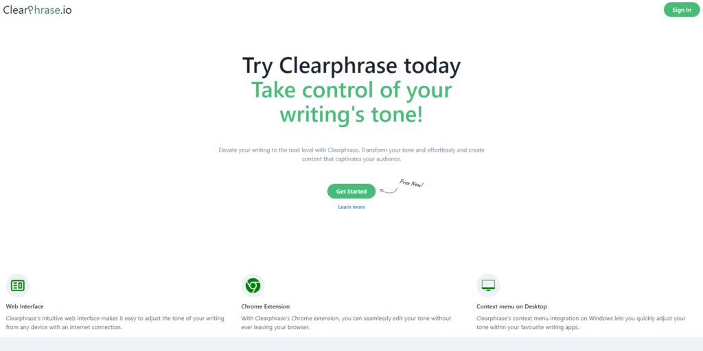 To use ClearPhrase, start by accessing the web interface from any device with an internet connection. From there, you can easily adjust the tone of your writing. For users of Chrome, the ClearPhrase Chrome extension allows seamless tone editing directly within the browser. Windows users can also utilize the context menu integration to quickly adjust tone within their favorite writing apps.