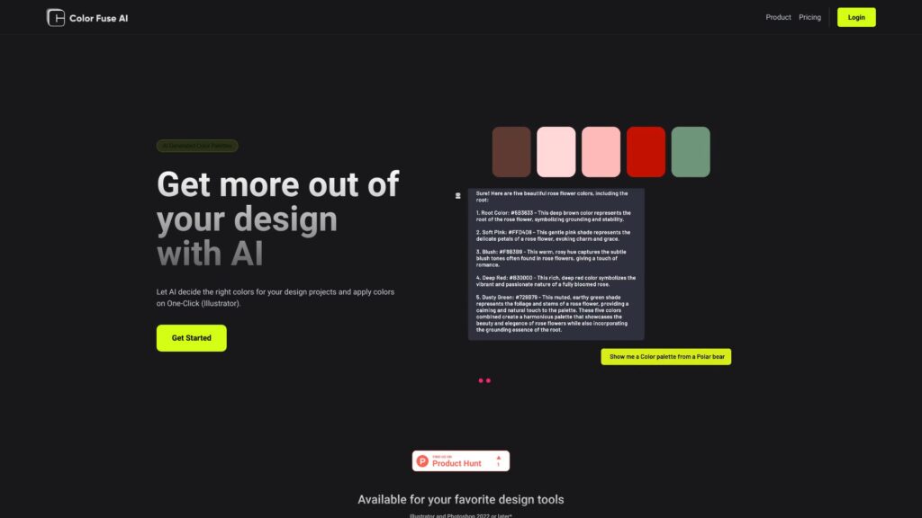 AI-powered chat generates color palettes.