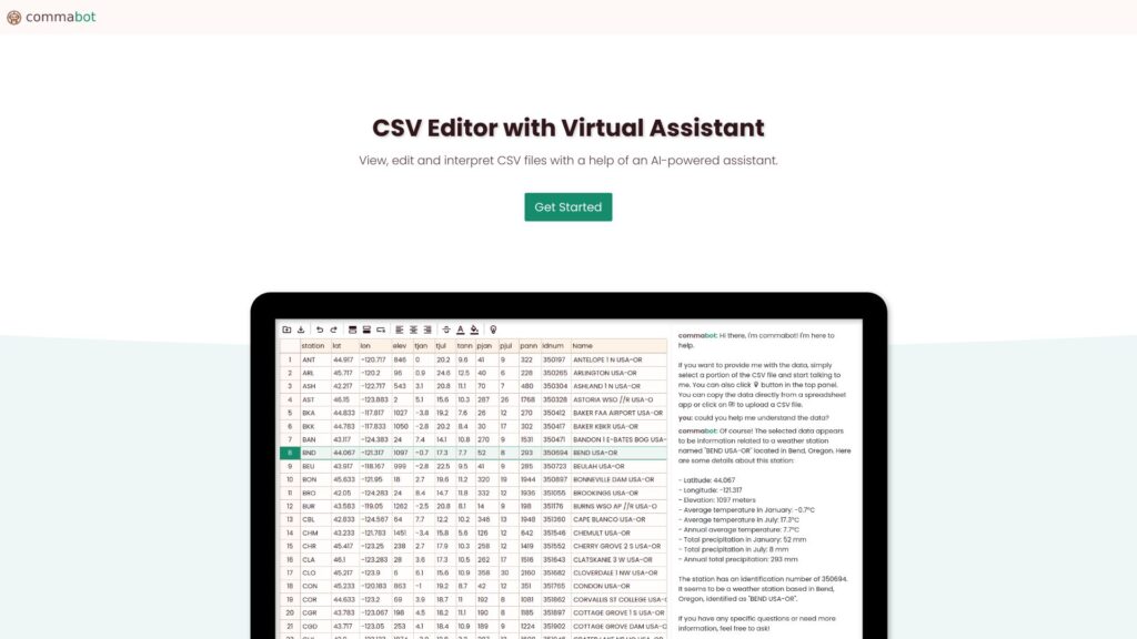 View, edit, and interpret CSV files with ease using Commabot’s AI-powered assistant.