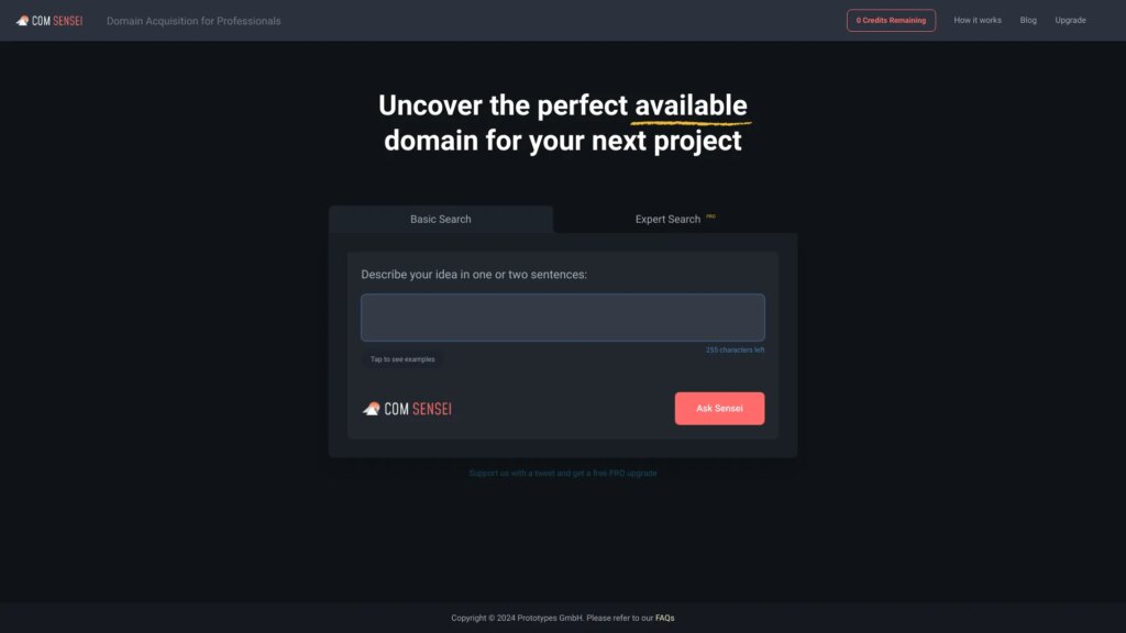 COMSENSEI is an AI domain hunter that is trained to find high-quality available .com domains based on a simple description of your project or website and offers fine-tuning of various characteristics to get you the best results.