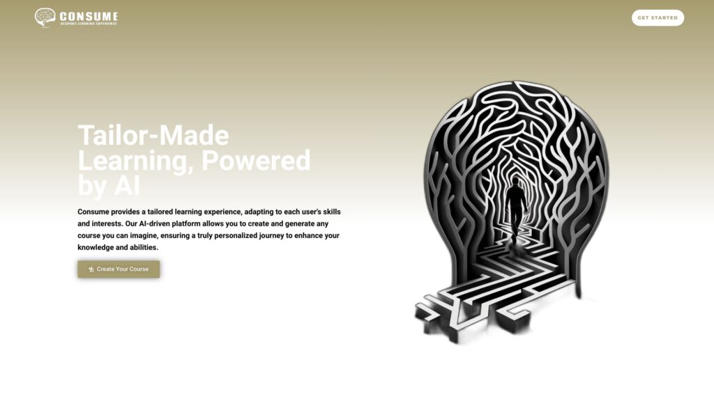 Consume is an AI-driven platform that provides a tailored learning experience, adapting to each user’s skills and interests. It allows users to create and generate personalized courses based on their individual goals and preferences.