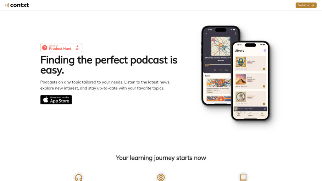 To use Contxt, simply browse categories, listen to 6-minute personalized podcast episodes, bookmark interesting topics, and engage in endless learning journeys.