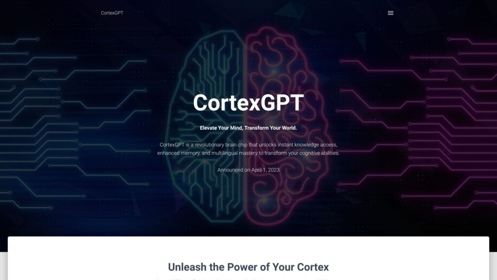 CortexGPT is a revolutionary brain chip that seamlessly integrates AI-powered capabilities into the cerebral cortex, providing instant information access, multilingual mastery, and enhanced memory recall for transformative cognitive abilities.