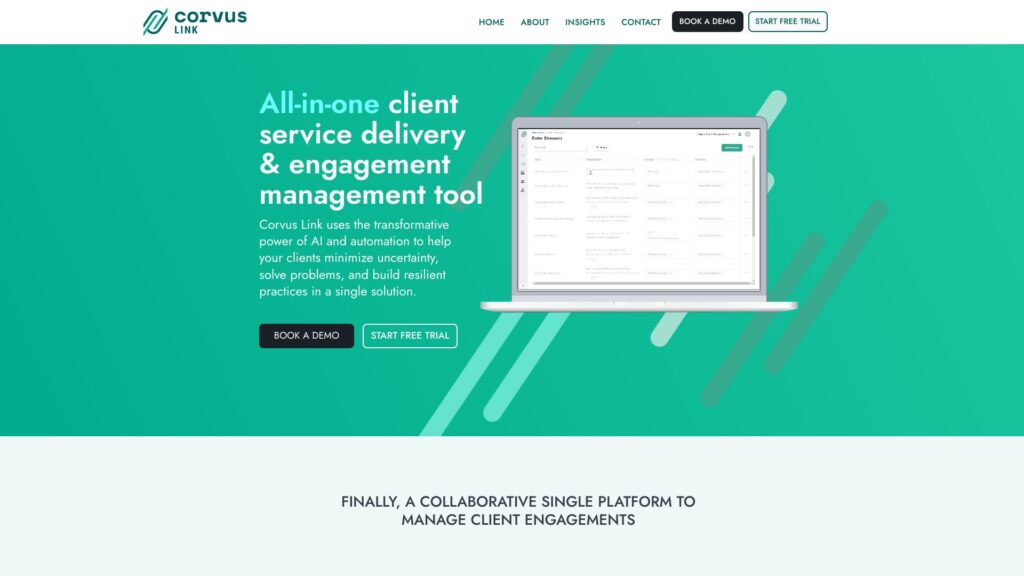 Corvus Link is an all-in-one solution that uses AI and automation to deliver transformational change and build resilient business practices. It helps organizations solve problems, nurture innovation, and execute strategies.