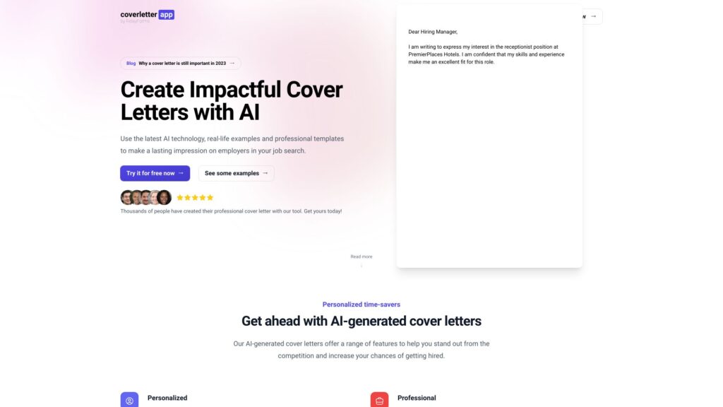 coverletter.app is an online platform that utilizes AI technology, real examples, and professional templates to help job seekers create impactful and personalized cover letters. It offers a range of features to stand out in job searches and impress employers.