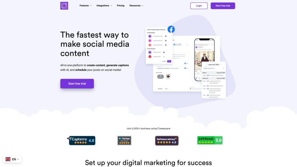 Creasquare provides a thorough digital content solution driven by AI, featuring tools for content creation, scheduling, analysis, and social media integrations.