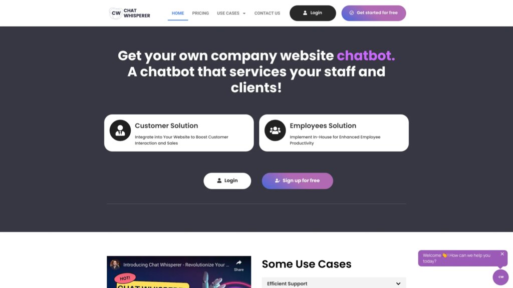 Chatwhisperer is a company chatbot that provides efficient support and product recommendations.