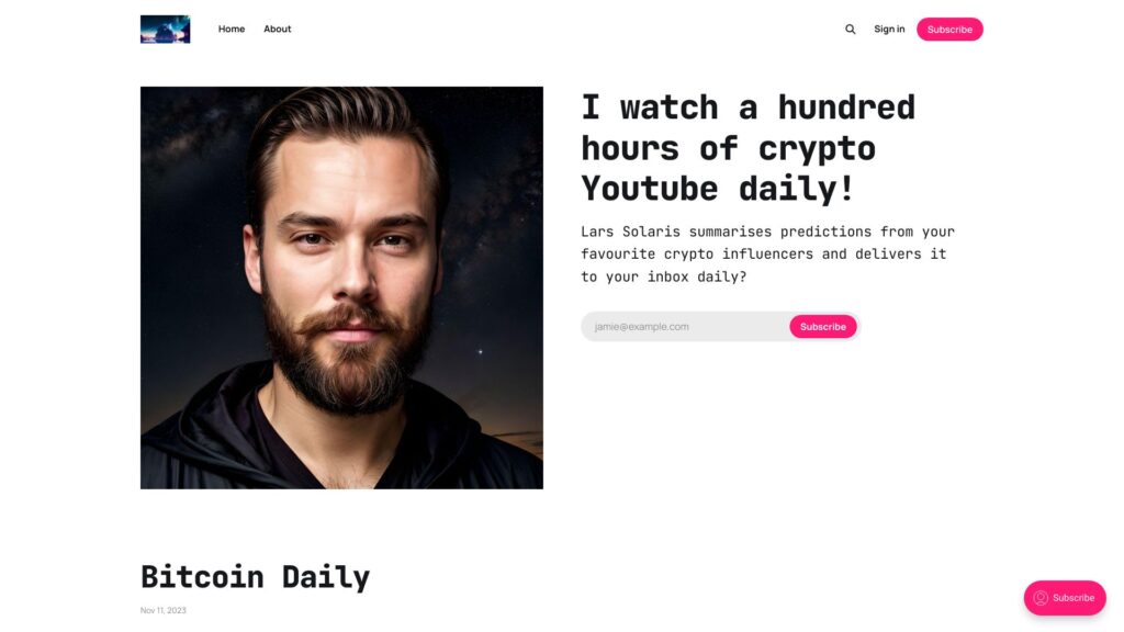 Lars Solaris Bitcoin predictions is a website that provides daily AI-generated summaries of price/macro predictions made by Youtubers in the crypto space.
