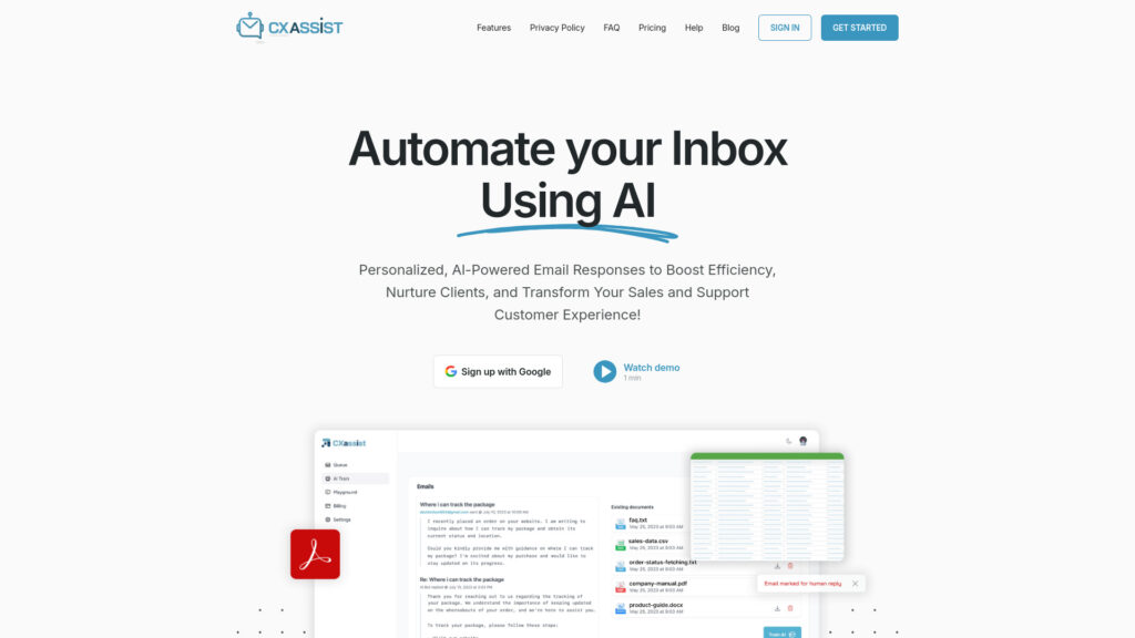 CX Assist is an AI-powered email response platform that automates inbox management by providing personalized email responses to boost efficiency, nurture clients, and enhance customer experience.
