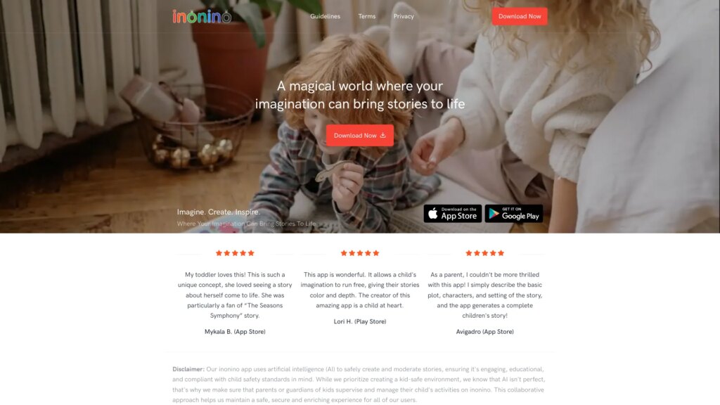 Yes, inonino uses AI to create and moderate stories, focusing on child safety standards. Parental supervision is recommended.