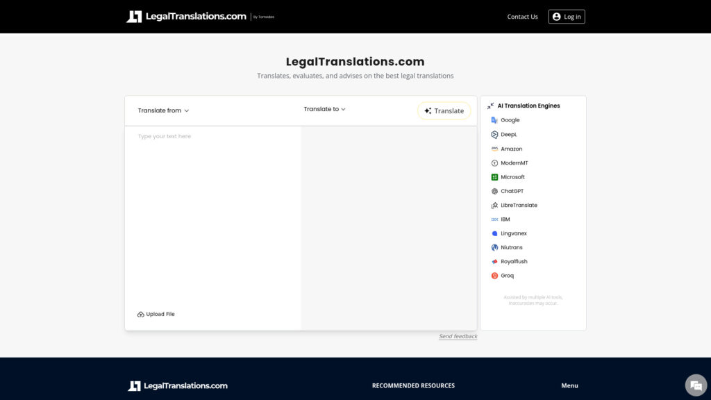 Users can upload their legal documents or enter the text to be translated on the website. The AI system and expert translators will ensure accurate and confidential translations.