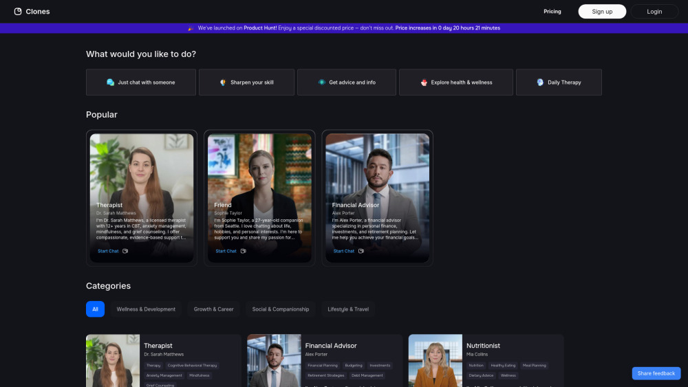 AI platform for personalized conversations across various scenarios.